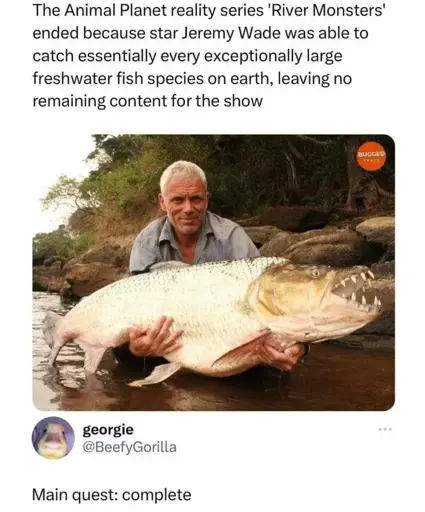 arrow-up13arrow-down1imageJeremy, the Catcher of River Monsters.lemmy.dbzer0.comMartineski@lemmy.dbzer0.comMEnglish · 1 year agomessage-square0linkfedilink