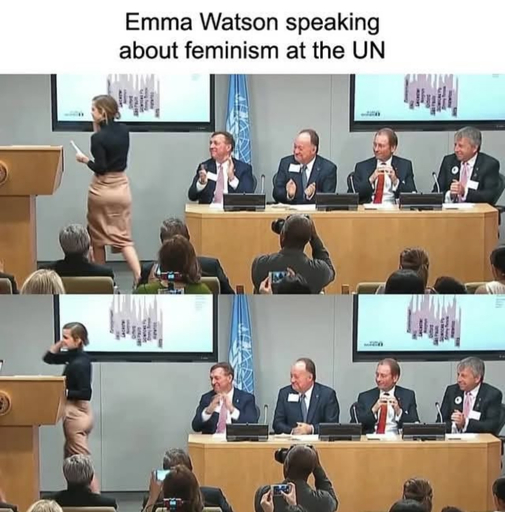 Or maybe looking at a butt is inconsequential compared to actively listening to the human being attached to it. Not that that is necessarily happening here, what with the UK backsliding since this photo.