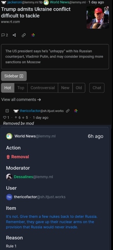 Modlog: https://photon.lemmy.world/modlog?user=8366919&community=32