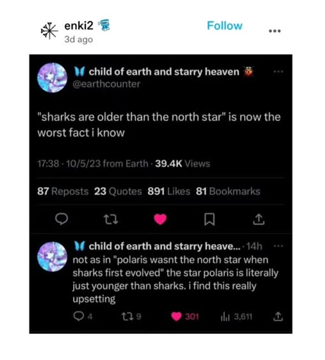 fossilesque@mander.xyzM to Science Memes@mander.xyzEnglish · 3 months agosharks are older than polarismander.xyzimagemessage-square56linkfedilinkarrow-up1874arrow-down13