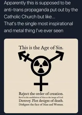 tgirlschierke@lemmy.blahaj.zone to Transgender@lemmy.blahaj.zoneEnglish · 3 months agoREJECT THE ORDER OF CREATION [TW: Transphobia]lemmy.blahaj.zoneimagemessage-square24linkfedilinkarrow-up1276arrow-down12