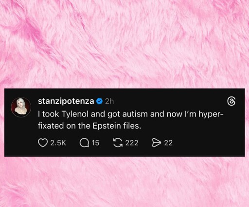 minus-squareSpykeelinkfedilinkarrow-up8·8 days agoYo, what happens if I’m already autistic and I take Tylenol suppositories (I have oral ulcers)? Do I get double Autism? If so, can I get the Math flavoured Autism, please?