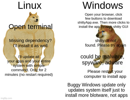 Windows has a package manager. Two, actually. There’s the Microsoft Store, the shitty one, and Winget, the decent one.