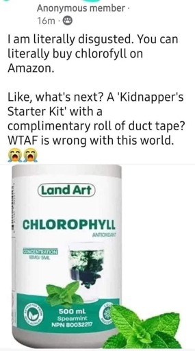 TIL that chlorophyll is a supplement. Can’t say I’ve ever thought of it that way