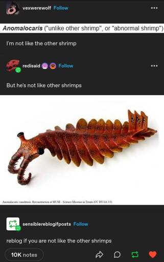 Fun fact for anyone who is interested, anomolacaris got its name before it had been fully reconstructed. The only thing they had was one of those curly appendages at the front, and they thought it must have been a shrimp, when in fact it was the mouth part of a much larger, much stranger animal.