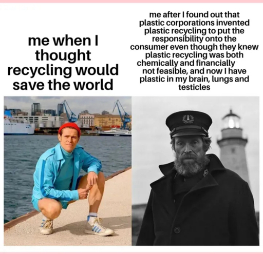 While I sympathize with the notion that we should hold big plastic accountable for all the trash, the solution is not to not reduce, reuse, recycle. All that crap is already there, we need to do something about it, just going “meh, recycling is just a conspiracy” is actively harmful
