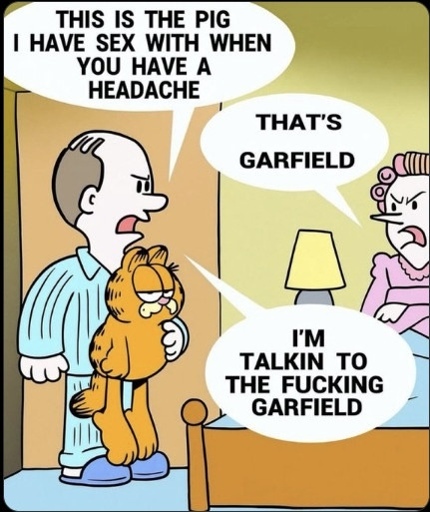 FenrirIII@lemmy.world to Funny: Home of the Haha@lemmy.world · 4 months agoI'm talking to the fucking Garfieldlemmy.worldimagemessage-square0linkfedilinkarrow-up156arrow-down127file-textcross-posted to: lemmyshitpost@lemmy.world