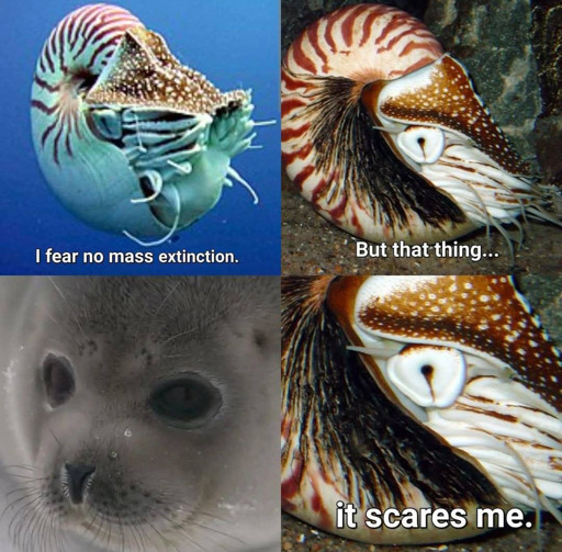 The current ones, yes, but I think the meme is a reference to how fossils of Nautiloids disappear in an area coincidentally with the arrival of pinnepeds, reducing their range and habitat to where it is now.