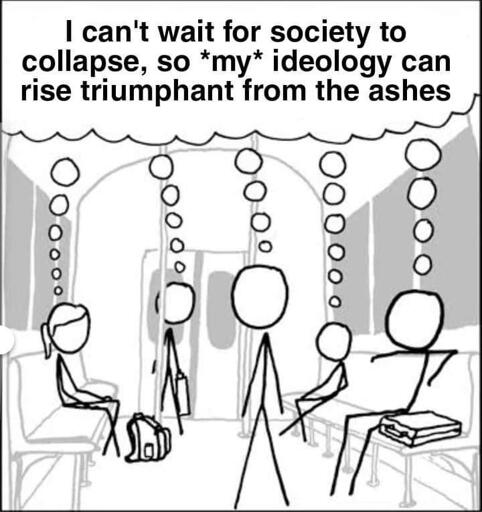 I didn’t realize that I had to fucking trace out that the collapse of society is bad, but I guess the OP was just too subtle.