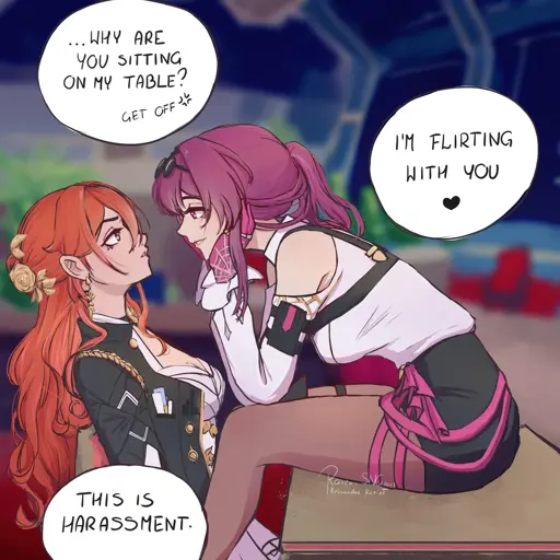 transcription: “why are you sitting on my table, get off” “I’m flirting with you” “this is harassment”