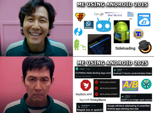 As gross as Google’s endless enshittification is, I blame the consumers for most of it. People vote with their wallets and they’ve been voting for the locked up walled garden crap option for the past two decades, especially in the US, where there is literally a culture of “ew, you have a green message bubble!” and chasing a status symbol is way more important than things like actual ownership over your devices, digital freedom and customization. And funnily enough, Google’s hardware sales have started increasing steadily since they’ve started copying Apple’s shitty model.