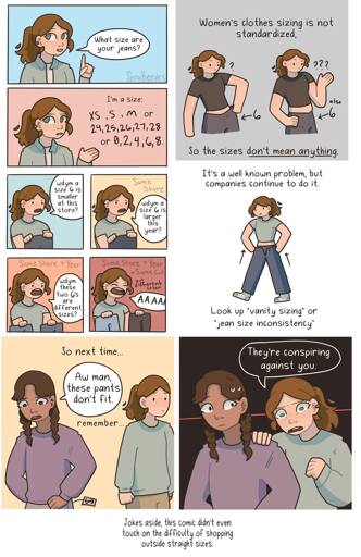 i know the author is only familiar with their own experiences and i don’t expect them to know the other side but this is definitely not exclusive to women’s clothes. every brand just uses their own sizes for everything from hats to pants to shoes.