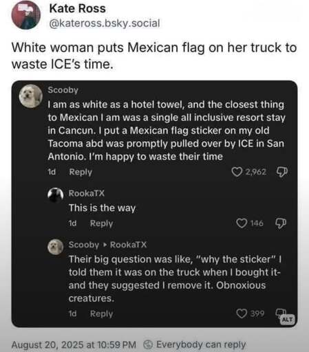 minus-squarefuckgod@feddit.onlinelinkfedilinkEnglisharrow-up13·1 个月前I just want a story where a pile of ICE bodies is discovered somewhere. I actively want to see a body pile of corpses, but of them. I might forgive certain kinds of ignorance (begrudgingly) if people snap out of it, but I will never forgive ICE members. We’re living through what will become Inglorious Bastards II.