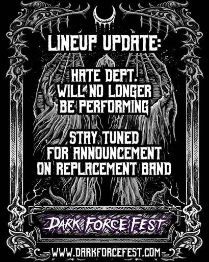 Planning for next years had already started. Merchants and bands already locked down. After the deadline, on their own social media. Two artists announced that they would be performing onstage with the band, hate department. Two artists that hadn’t been invited for their personal stances. Apparently, hate department planned to Trojan horse them into the event. Needless to say it created quite an uproar once it got out and there was a lot of push back.