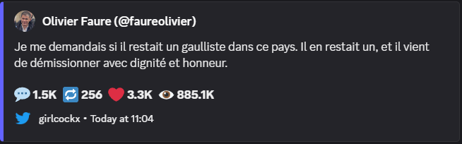 oui, et c’est d’autant plus daté comme référence que ça montre à quel point Faure et le PS sont prisonniers d’un besoin de donner des gages de respectabilité aux mauvaises personnes, au lieu de risquer de faire une vraie politique de gauche. Si le comble de la légitimité politique c’est De Gaulle, pas étonnant que la moindre mesurette pour reprendre aux riches deviennent du terrorisme dans le débat.