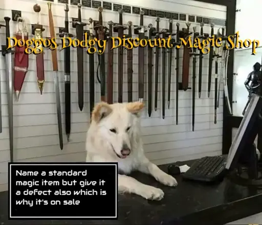 Or, a bag of holding embedded in a doll’s butt. Try being taken seriously when you’re fisting a plushie for a magic potion.